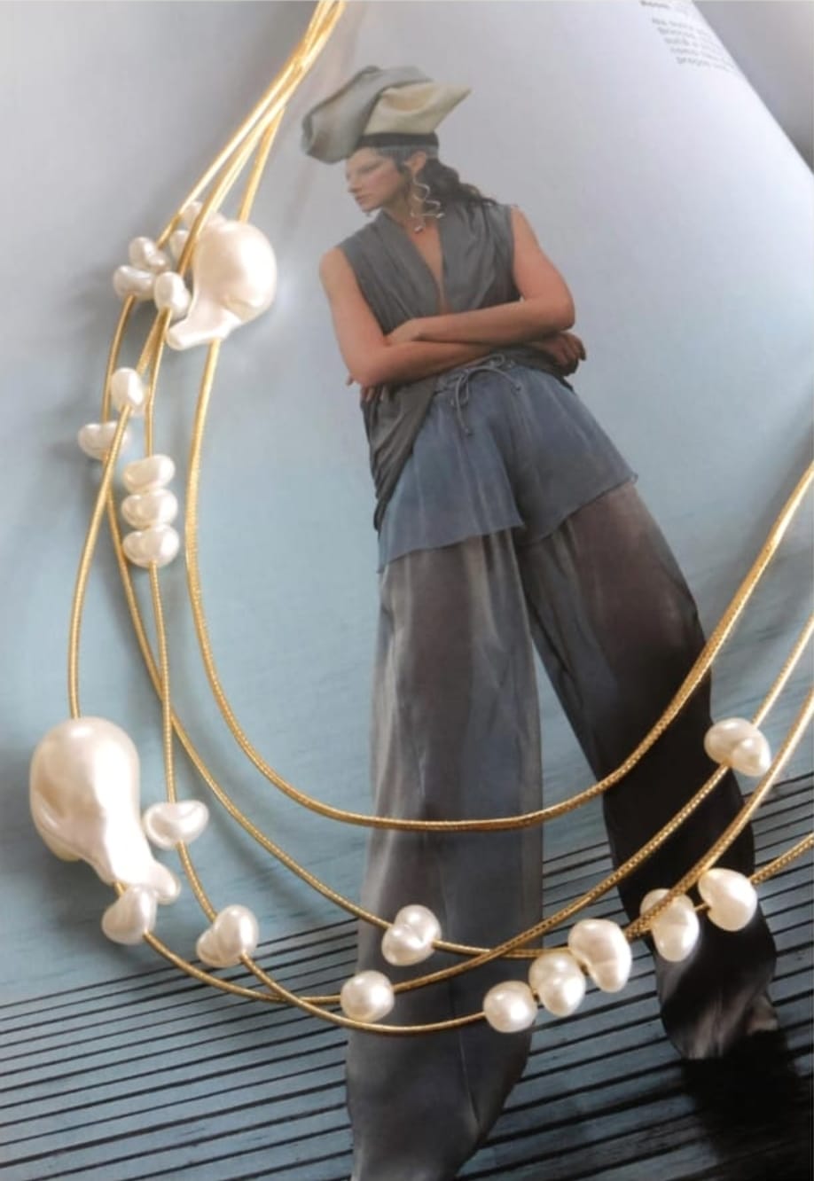 Um colar de pérola é uma peça clássica e atemporal que combina a elegância natural da pérola com a beleza do design da joia. Geralmente, consiste em uma única pérola, que pode ser natural ou cultivada, como destaque central.