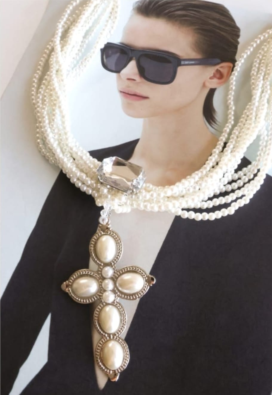 Um colar de pérola é uma peça clássica e atemporal que combina a elegância natural da pérola com a beleza do design da joia. Esse colar tem como destaque central o crucifixo que junta a tendência boho e o pingente também pode ser usado de forma separada, como em um lenço por exemplo.